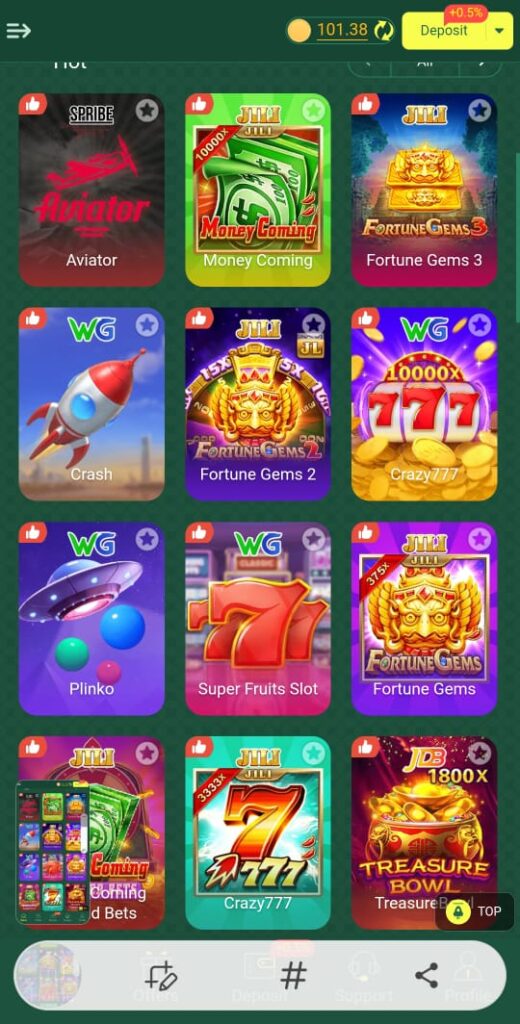 You’ll find slot machines, card games, lotteries, and sports predictions all in one place.