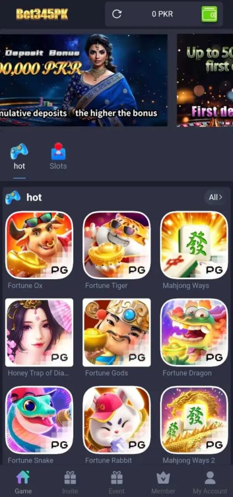 Bet345 Game is a real cash casino app available for players in Pakistan. It provides a wide variety of games, including slot machines, card games, sports betting, and lotteries. Players can sign up, deposit money, and start playing within minutes.
