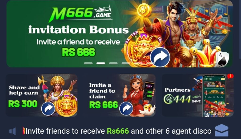 Invite friends to join the M666 Earning Game. You’ll get a referral bonus for every new user who registers and plays.
