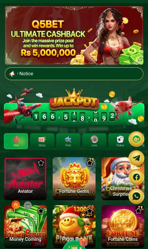 Q5Bet Game is one of the most reliable and entertaining earning apps in Pakistan. It provides real cash rewards, fast payments, and a complete Q5Bet casino experience. With slots, cards, sports, and lottery, the app offers nonstop entertainment.