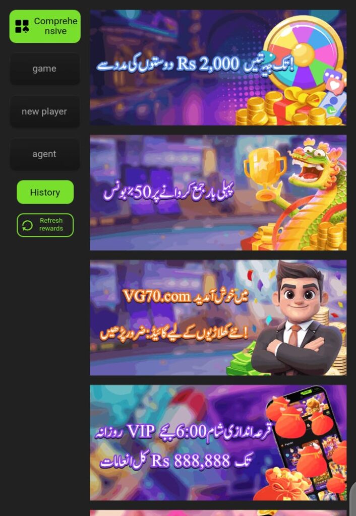 With easy registration, local payment methods, and instant cash-outs, VG70 is a trusted app for Pakistani users. Its smooth design, exciting bonuses, and strong security make it one of the top choices for gamers today.