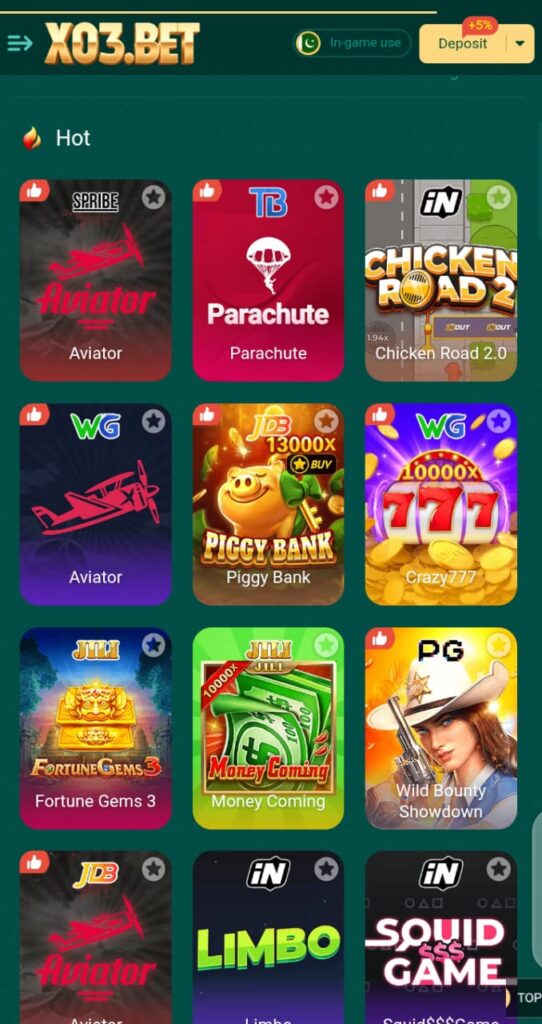 X03 Bet Game is a real cash app and online casino platform operating in Pakistan. It works as an earning game where users can play various games to win money. These include card games, lottery draws, sports betting, slot machines, and more. The app promises a secure environment, local payment methods, and features specially made for Pakistani users.